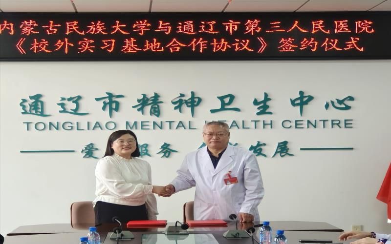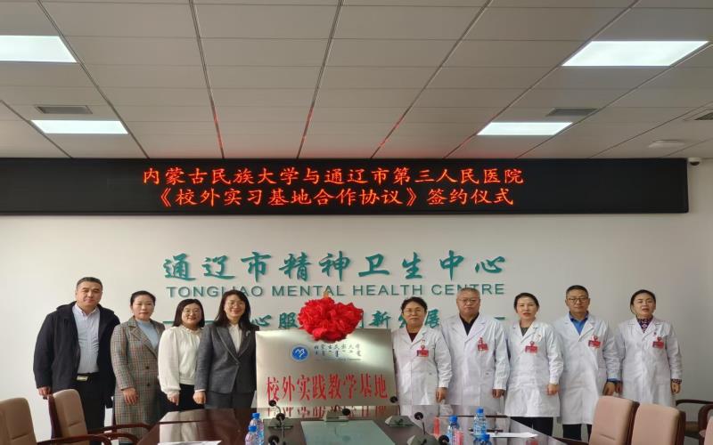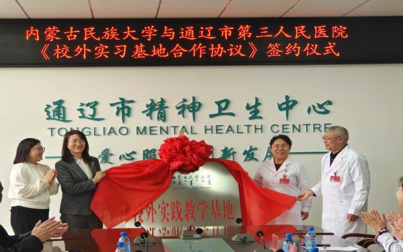 3月4日,内蒙古民族大学护理学院与通辽市第三人民医院(通辽市精神卫生中心)正式签署校外实践教学基地协议,并举行揭牌仪式。内蒙古民族大学护理学院院长董丽霞、教务处副处长洪艳带队出席,通辽市第三人民医院党总支书记雷桂芳、院长孙洪军等院领导班子成员参会。副院长于红梅主持签约揭牌仪式。