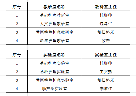 护理学院各教研室、实验室一览表