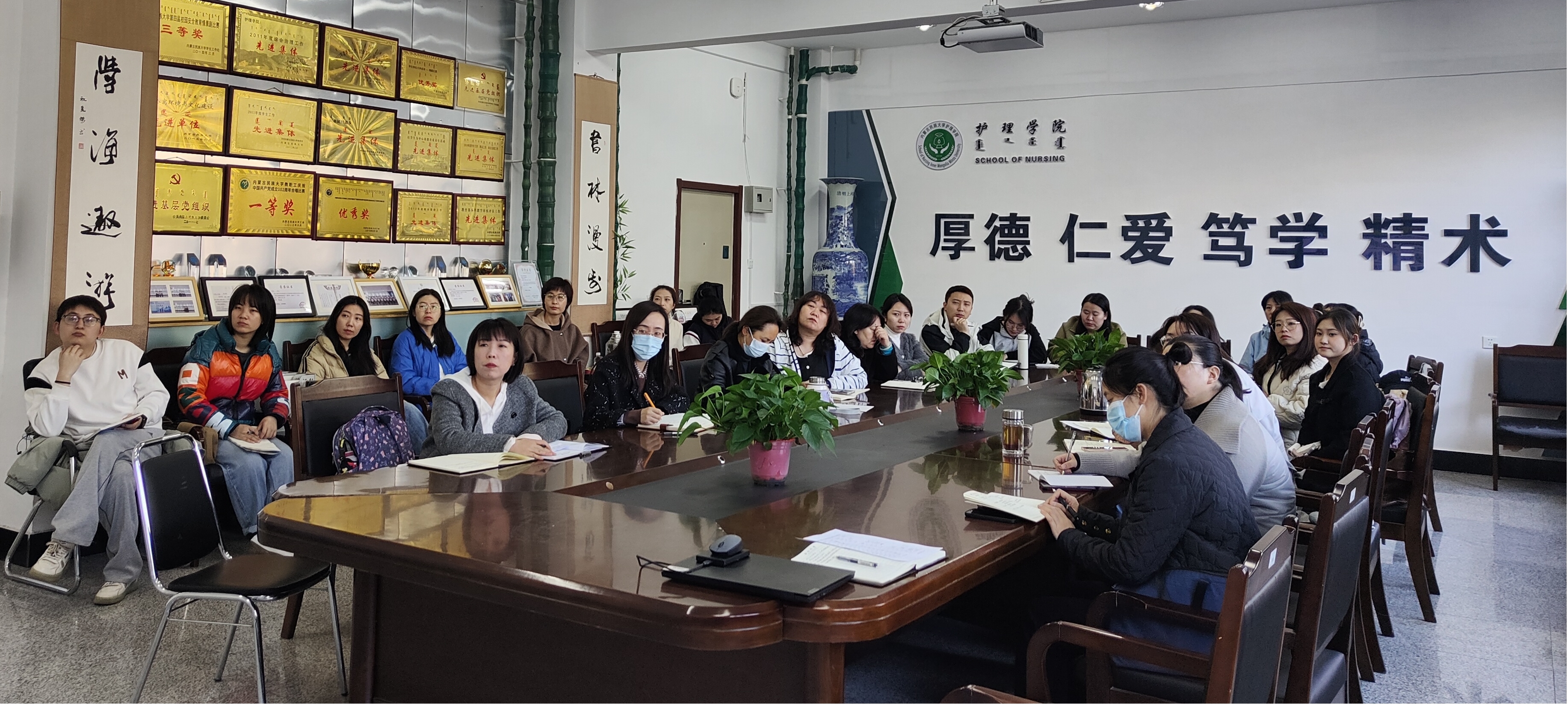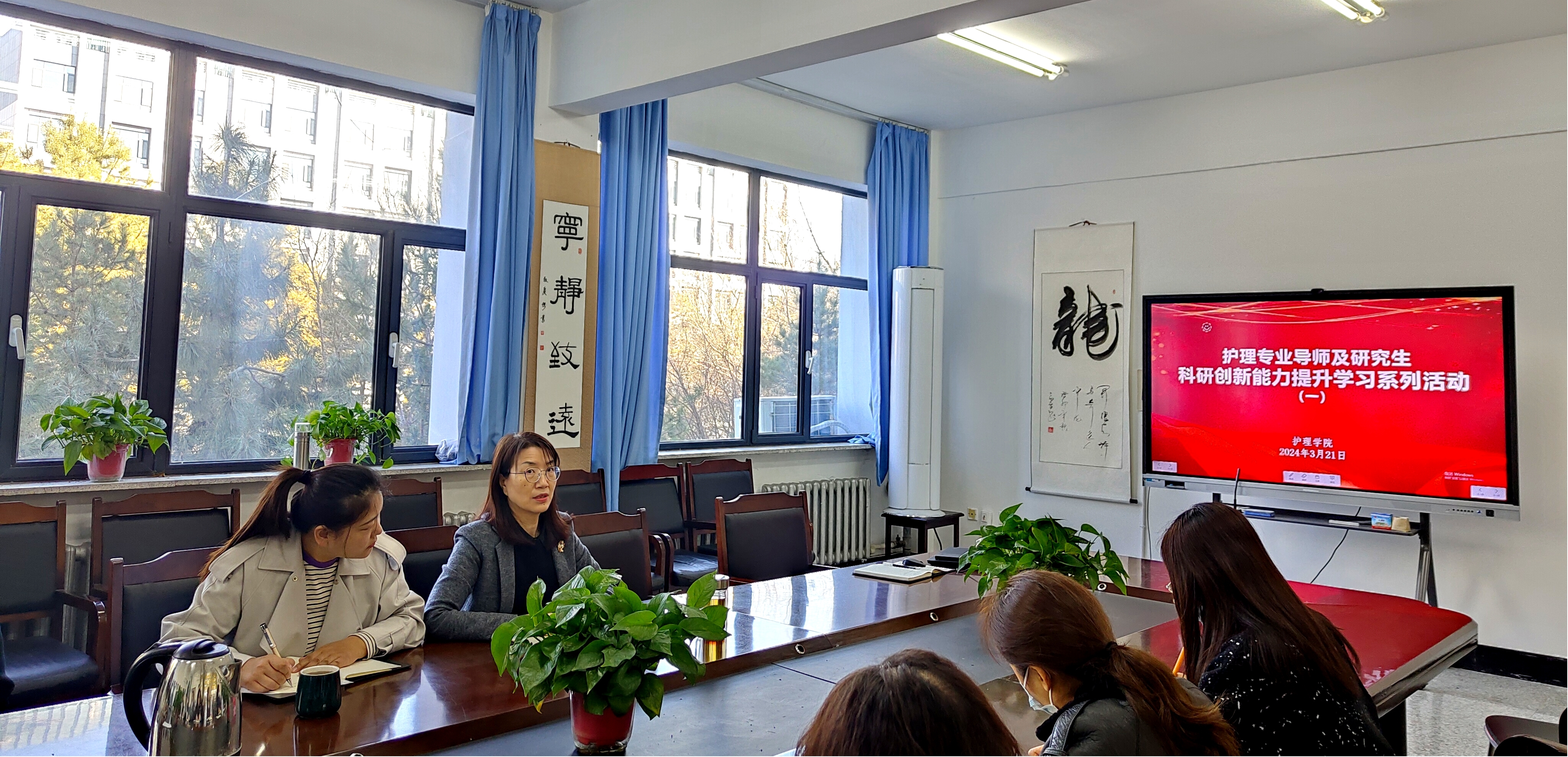 3月21日上午,护理学院在医学楼229会议室召开护理专业导师及研究生科研创新能力提升的培训系列活动。会议由院长董丽霞主持,教务处副处长洪艳、副院长包海蓝等10位护理专业硕士研究生导师、学科办以及23级全体硕士研究生参会。