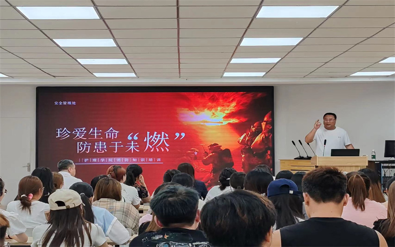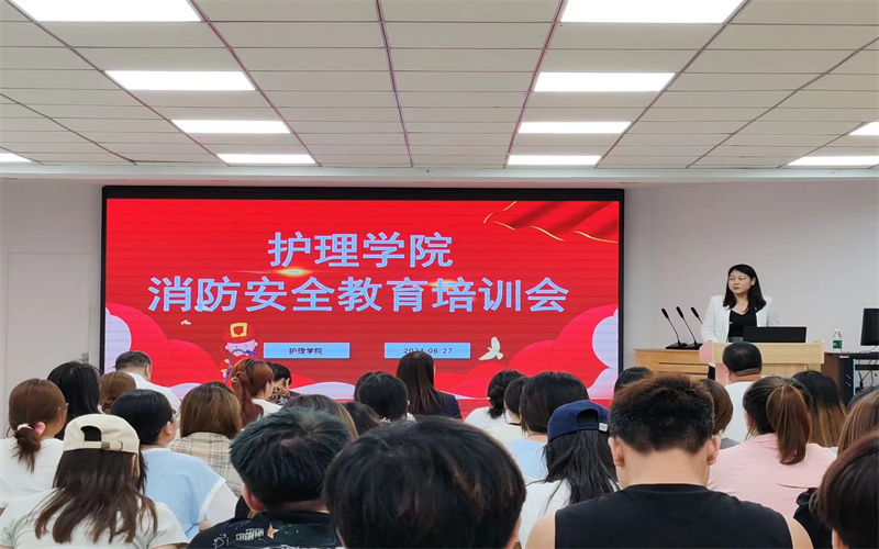 为增强全体师⽣的消防安全意识和应急处理能⼒,护理学院于6⽉27⽇特别邀请我校安全管理处治安消防科科⻓李志军开展消防安全培训活动。参加培训⼈员包括护理学院领导班⼦成员和全体教师、学⽣代表共计90余⼈。培训由护理学院副院⻓包海蓝主持。