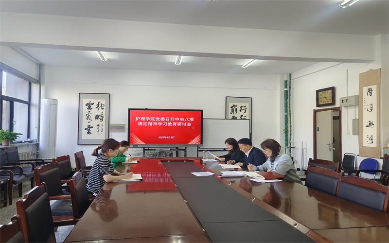 4月3日,护理学院党委召开中央八项规定精神学习教育研讨会。学院党委理论学习中心组成员参加。学院党委书记阿都沁夫主持会议。