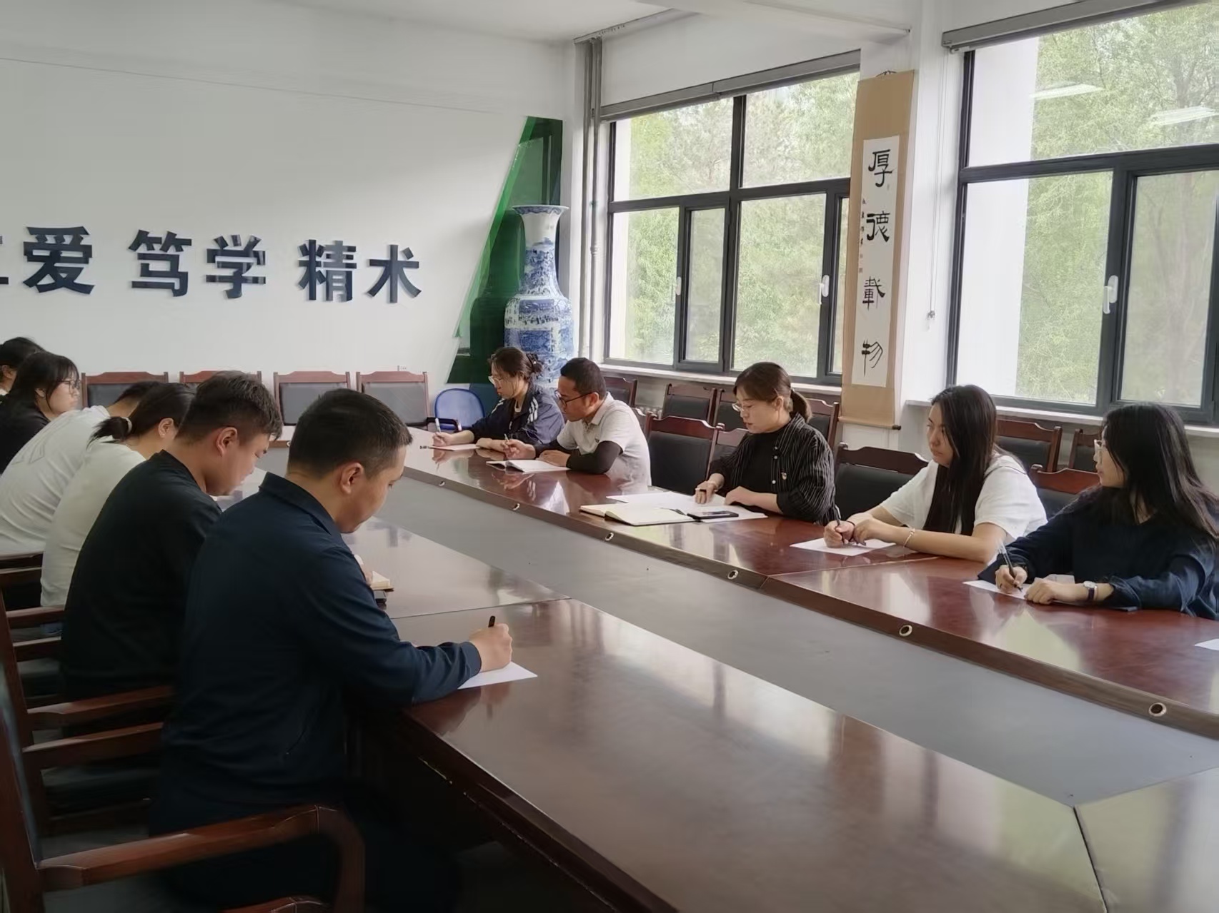 会上,李宏霞传达学习了中央党的建设工作领导小组《关于集中整治违规吃喝的通知》《关于将<党政机关厉行节约反对浪费条例>纳入学习教育内容的通知》,与会党员结合学习内容,结合本职岗位进行剖析研讨。