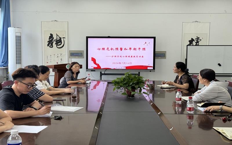 根据学院工作安排,进一步提升班主任、辅导员心理健康知识、提升应对处理能力,学院于7月16日上午在医学楼229会议室举办心理健康教育讲座——心理危机预警和早期干预。讲座由学生处心理健康教育中心主任李丹主讲,学院党委副书记包明兰、辅导员、在校班班主任及2024级新生班班主任参加,包明兰主持讲座。