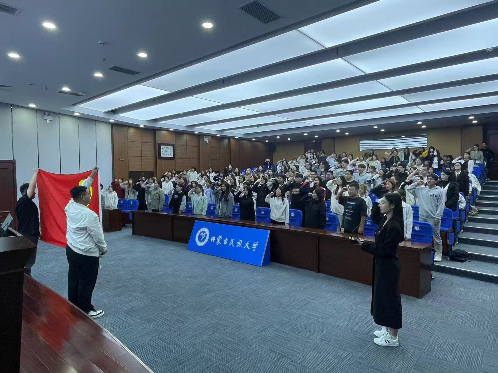 李宏霞首先带领大家学习共青团的历史,认识共青团、回望五四运动、倡导五四精神,随后带大家认识共青团的重要标识——团徽、团旗、团歌。介绍学院共青团工作,讲解《内蒙古民族大学第二课堂学分管理办法》,让团员青年了解到参与各类校园文化活动、社会实践活动和志愿服务活动的重要性,以及如何通过参与活动获得学分。让团员和青年明确了今后努力方向和目标,进一步增强了团员青年使命感和集体荣誉感。