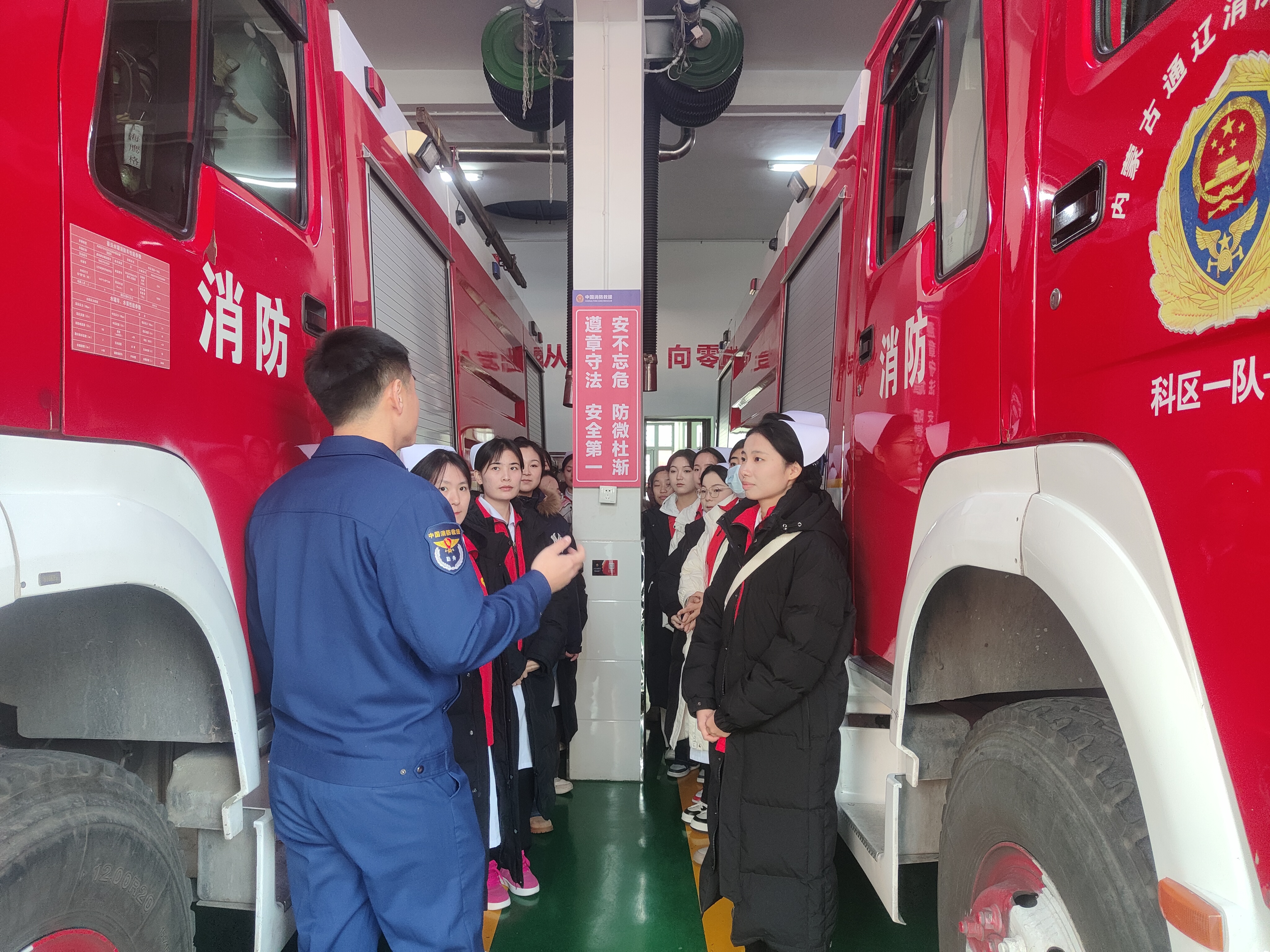 为提升学生消防安全意识,提高学生自我保护能力,2024年11月24日下午,护理学院开展了“走进消防站,致敬火焰蓝”主题社会实践活动。学院团总支书记李宏霞带领学院15名学生代表走进科尔沁区建国路消防救援站,通过近距离接触和学习消防知识,让同学们进一步了解了消防安全意识,体验一线消防员的勇敢和坚韧。