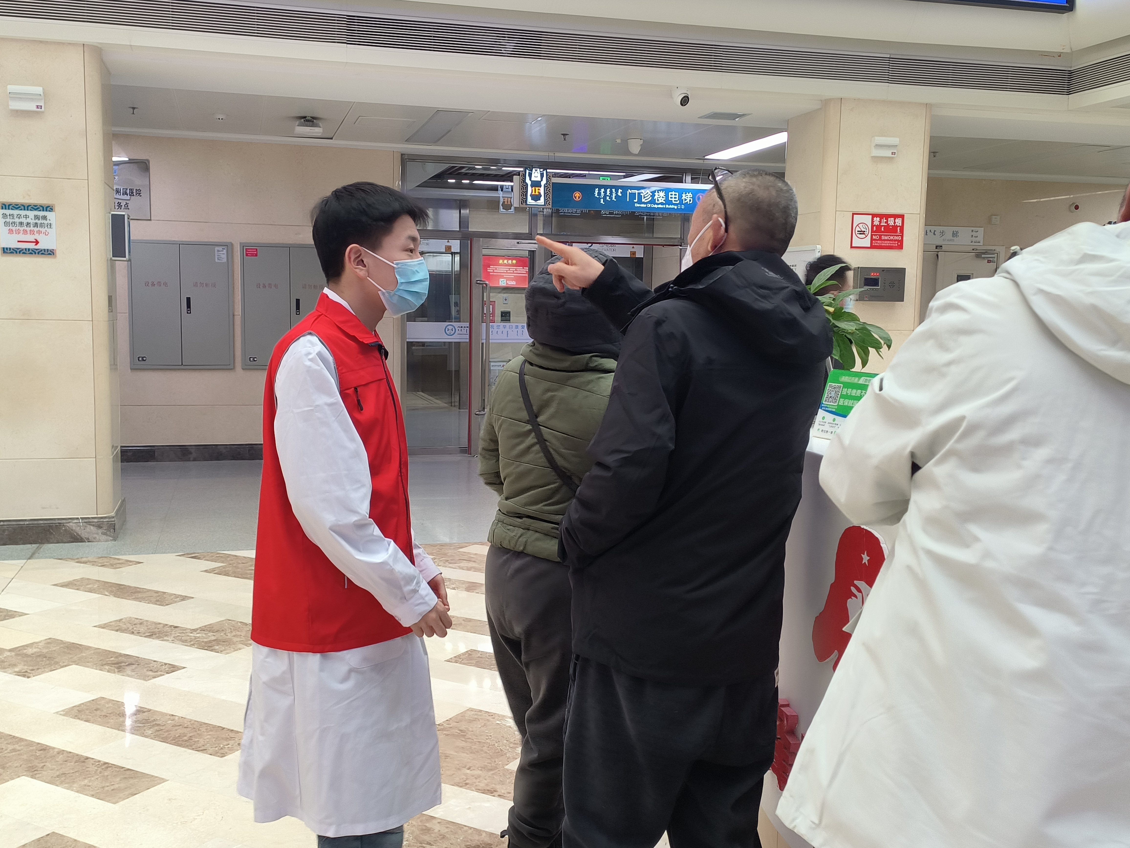 活动中,在医院护士张娜,龙丽两位老师的详细介绍下,同学们熟悉了门诊工作流程和工作环境,随后按照工作类别进行分组,分配不同的工作任务。志愿者们迅速奔赴岗位,开启贴心志愿服务。自助挂号区域,面对智能设备面露难色的老年患者,志愿者们主动上前,耐心讲解步骤,从医保卡插入方向到缴费选项选择,手把手演示操作,直至老人顺利挂上号。导诊台前,他们化身为“活地图”与“知心人”,仔细问询患者症状,凭借对科室分布的熟稔,精准指引路线,还不忘安抚焦虑情绪,轻声叮嘱注意事项。在电梯口前他们贴心的为患者和患者家属指引楼层和科室位置,为患者指引方向。