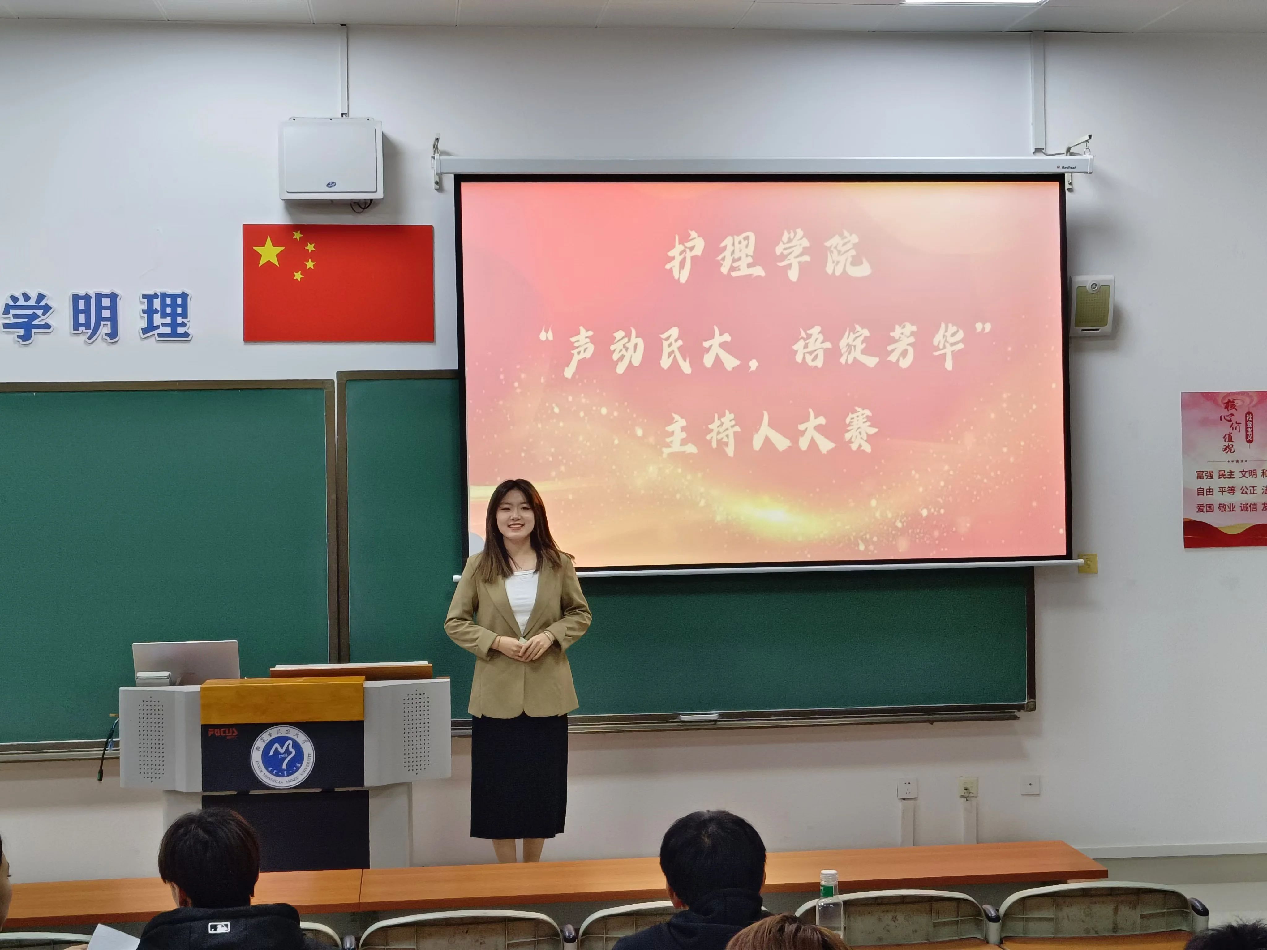 为深入学习宣传贯彻习近平新时代中国特色社会主义思想和党的二十大精神,进一步提高我院师生语言文字规范意识和应用能力,营造良好的语言环境,丰富大家的课余生活,选拔优秀的主持人,学院于2024年10月31日在西拉木伦校区实验楼307开展护理学院“声动民大,语绽芳华”主持人大赛。