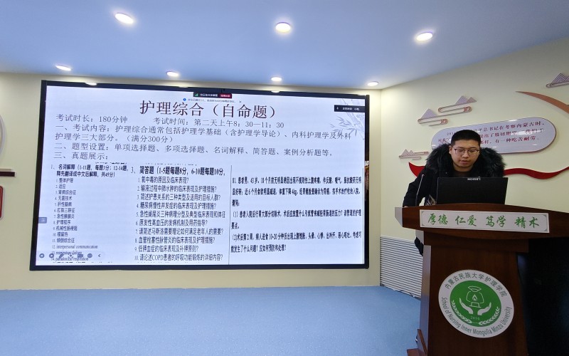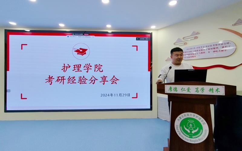 为增强学生规划意识,根据职业规划大赛同期活动工作安排,学院于11月29日19:00,在医学楼201展开“学长学姐面对面”考研经验分享会。分享会邀请了学院2024级护理教育方向研究生小亮 ,老年护理方向研究生杨帆,有三甲医院工作经历、临床护理方向研究生尹雪雁进行了分享,即将要参加考试或有考研意向的90余名学生参加了经验分享会,分享会由辅导员包宝林主持。