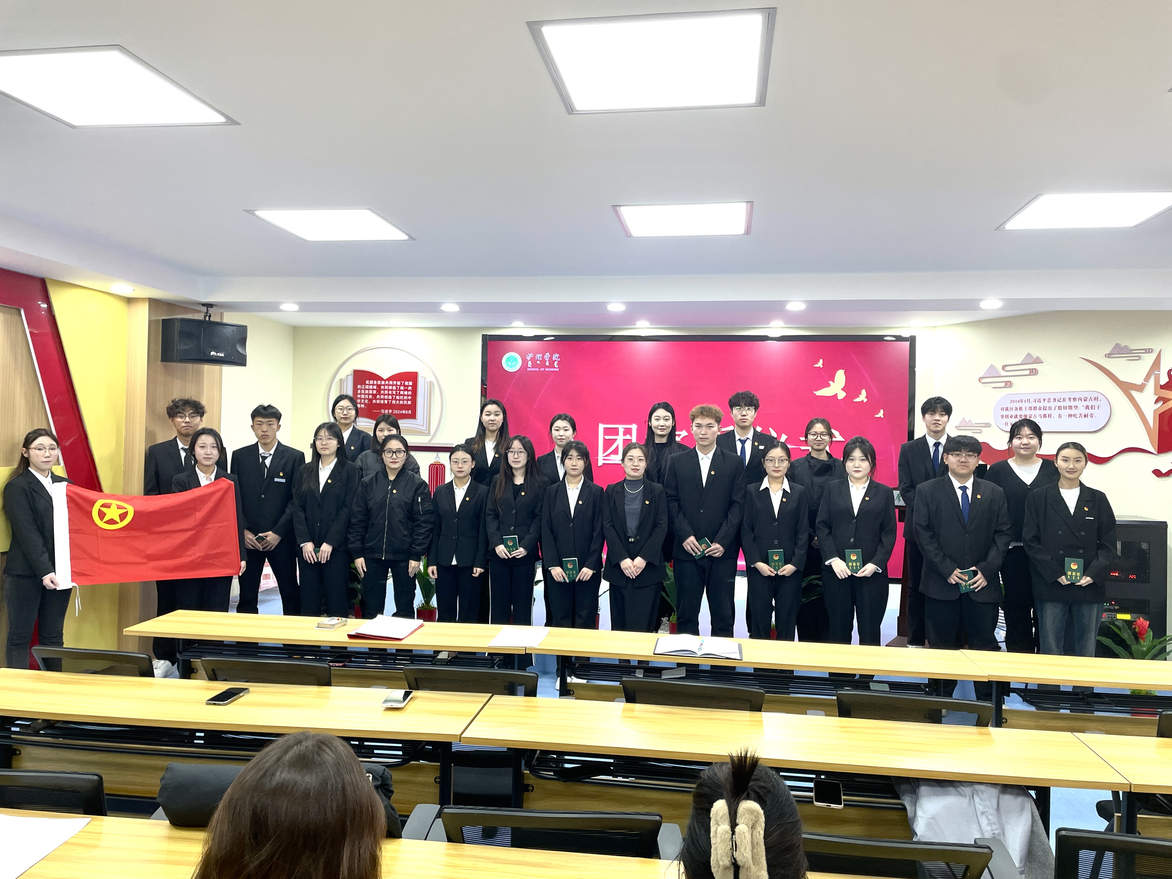 活动在激昂的共青团团歌声中正式拉开帷幕。团总支委员陆志敏同学宣读新团员名单,由学院团总支书记李宏霞及2024年度优秀共青团员代表为新团员陈文平、孟德超、姚其木格、张浩、纪鹏、张思凤、王娇、太荣婕、刘玲玲、特日棍、智明、刘宇彤等12名同学佩戴团徽,并颁发了团员证。团总支委员王彦凯同学阐述了团员的义务和权力,使现场每位团员更加清楚地认识到自己的责任和使命。