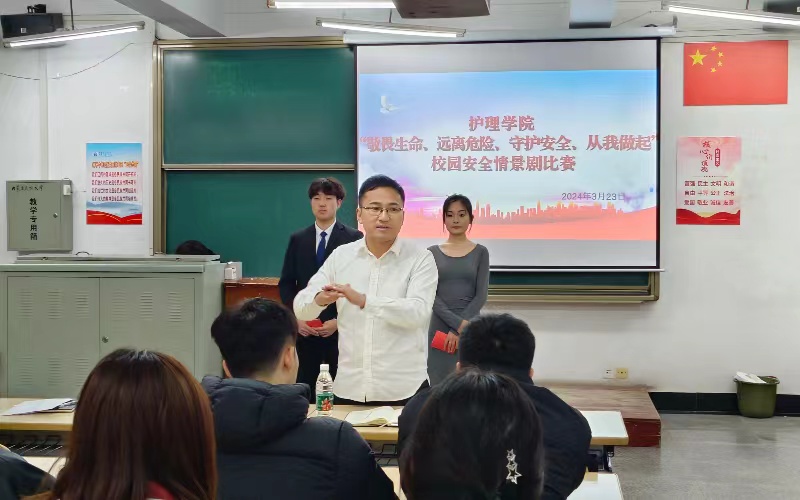根据学院安全教育活动月工作方案,为切实做好学生安全教育,学院于3月23日晚在理工楼131室举办校园安全情景剧比赛,在校班十组队伍参加比赛,比赛由学工办副主任包宝林和宿舍长代表当评委。