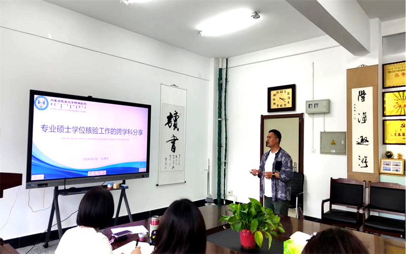 为做好护理专业学位授权点专项评估各项准备工作,进一步提升研究生导师专业素养,6月6日下午,我院邀请内蒙古民族大学附属医院临床医学院副院长耿婉如副教授及其团队教师孙德志老师在医学楼229作题为“从临床到护理:专业硕士学位核验工作的跨学科分享”经验交流会。护理学院院长董丽霞、副院长包海蓝及研究生导师20余人参加会议,会议由董丽霞主持。