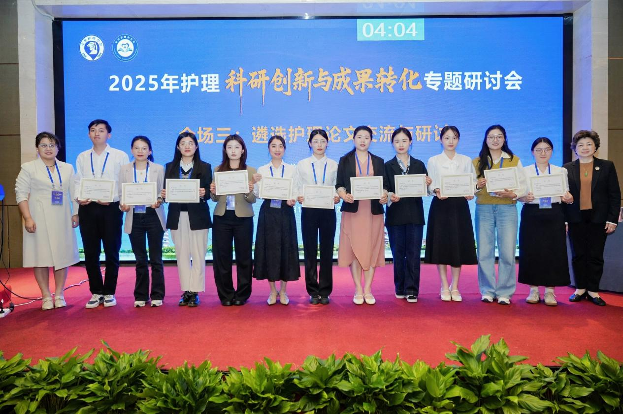 此次会议邀请跨专业领域的知名学者和护理专家围绕护理科研创新与成果转化等主题开展专题报告与研讨。此外,特设优秀护理科研创新与转化案例分享和优秀护理论文交流与研讨。与会教师同中华护理杂志社社长、中华护理学会高等护理教育专委会主任委员姜小鹰教授进行了亲切交流并合影留念。会议期间,耿婉如副院长受邀担任分会场主持人,并为投稿作者颁奖。通过参加此次会议,与会者进一步意识到护理专利转化对护理技术和实践的推动作用,护理学科高质量发展离不开护理科技创新。实现护理学科的持续进步和繁荣,应让科研回归临床,更好地服务患者健康。